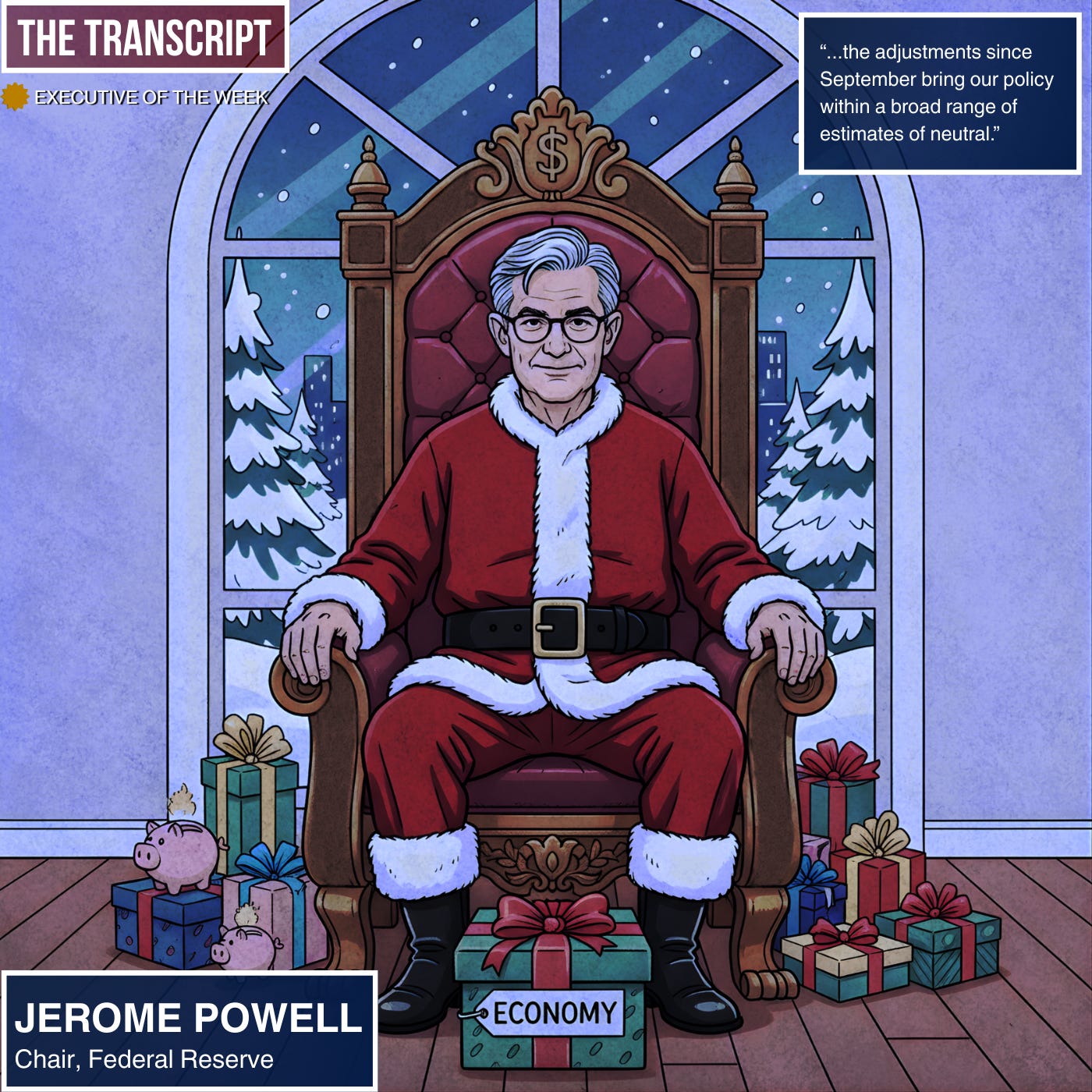 Summary: The Fed cut rates again last week and Jerome Powll suggested that they will probably be in a wait and see position for the foreseeable future. Powell is on his way out though so his view will matter less and less going forward. Consumers continue to be relatively resilient. The debate over an AI bubble continues.